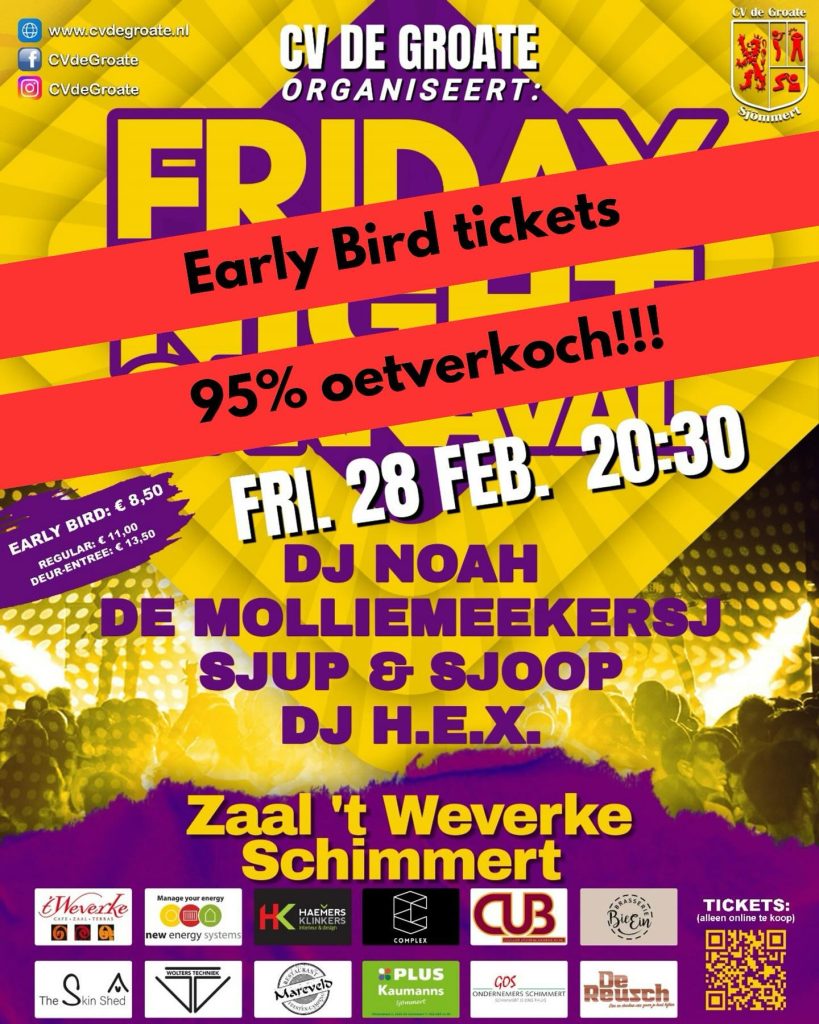 Dat betekent dat meer dan de helft van de tickets voor Friday Night al verkocht is… en we hebben nog ruim 3 weken te gaan tot het event!